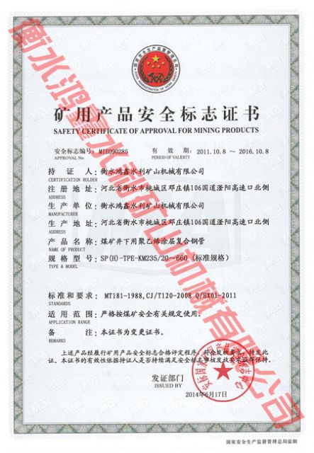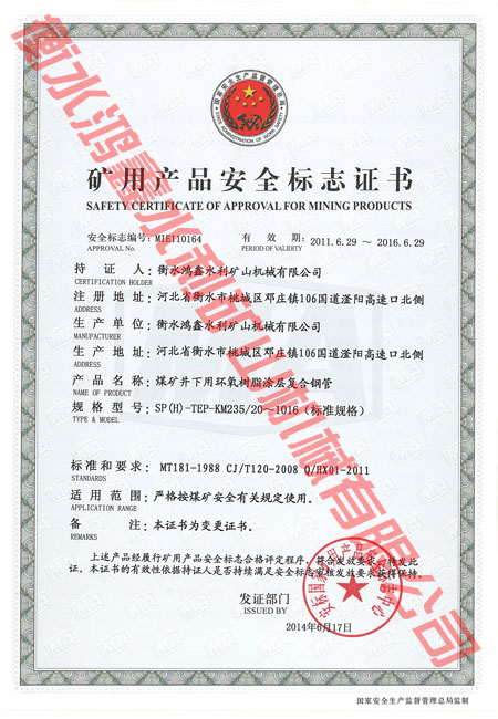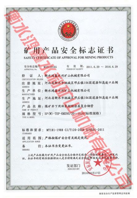 礦用產(chǎn)品安全標(biāo)志證書