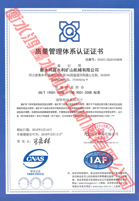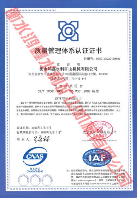 質(zhì)量管理體系認(rèn)證證書